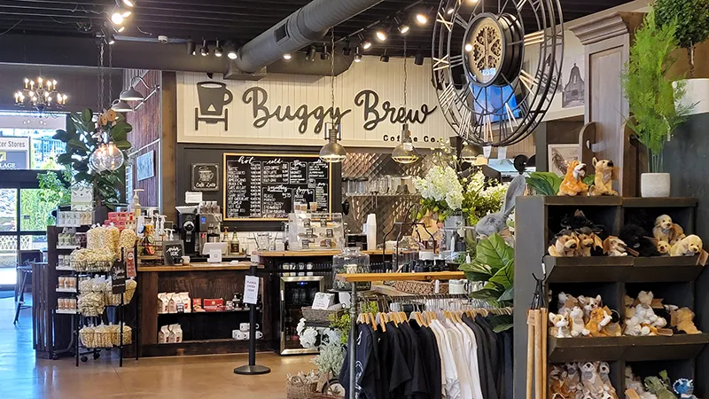 5. Buggy Brew Located within Country Gatherings, Buggy Brew serves fresh coffee, smoothies, frappes, and local baked goods. Guests can relax inside or use the convenient drive-thru for quick service.